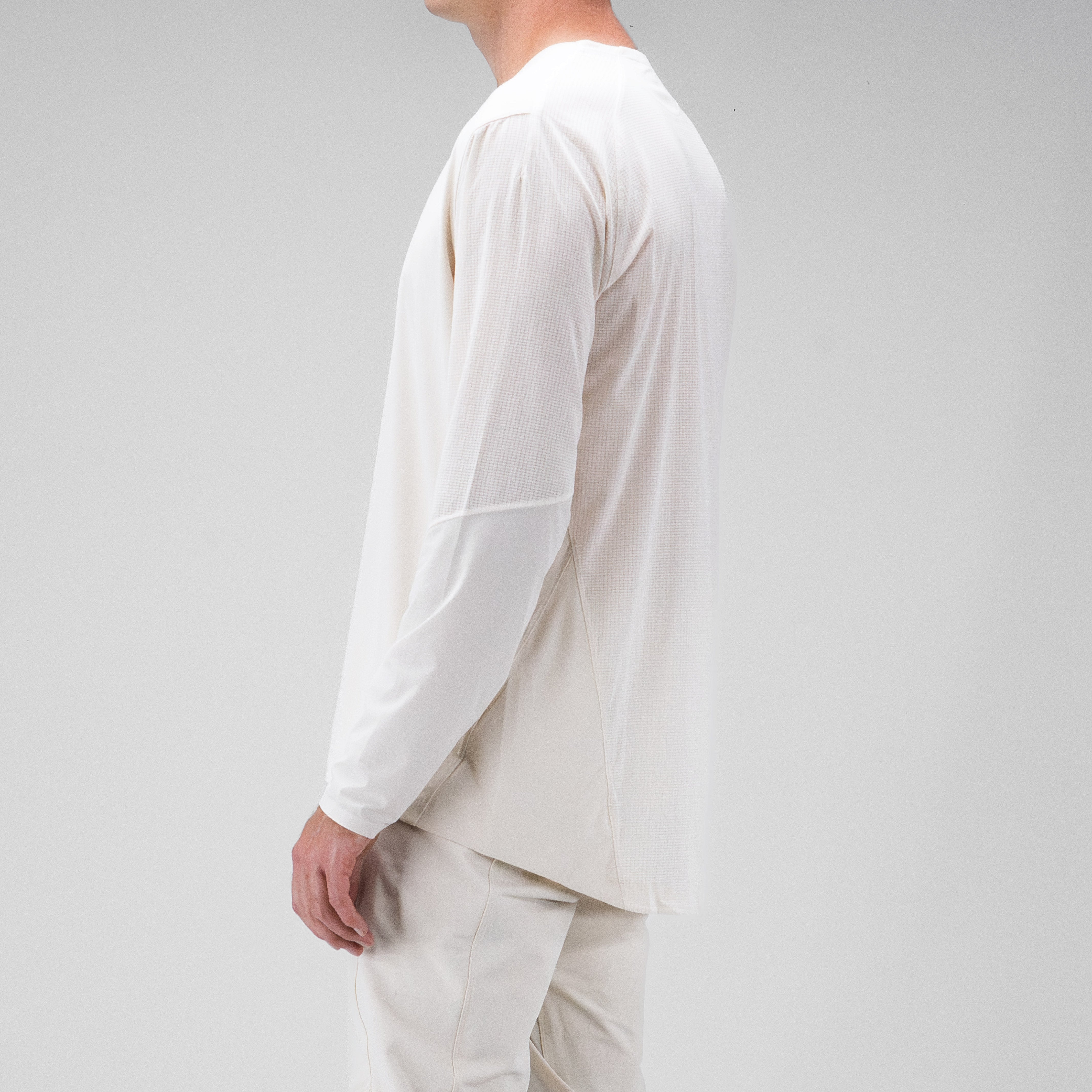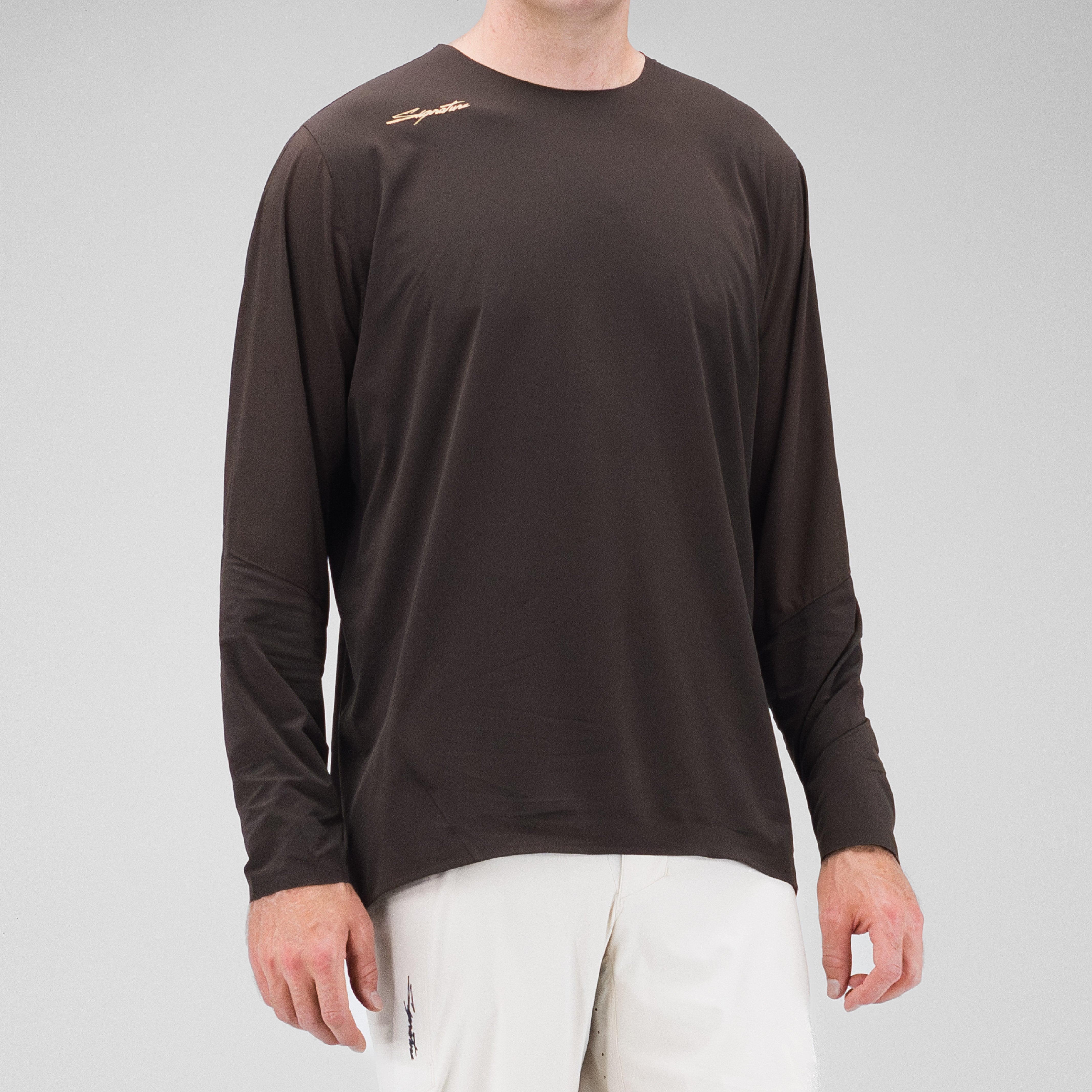 The long sleeve cut provides coverage without restricting movement, with a drop tail that maintains coverage in the riding position.